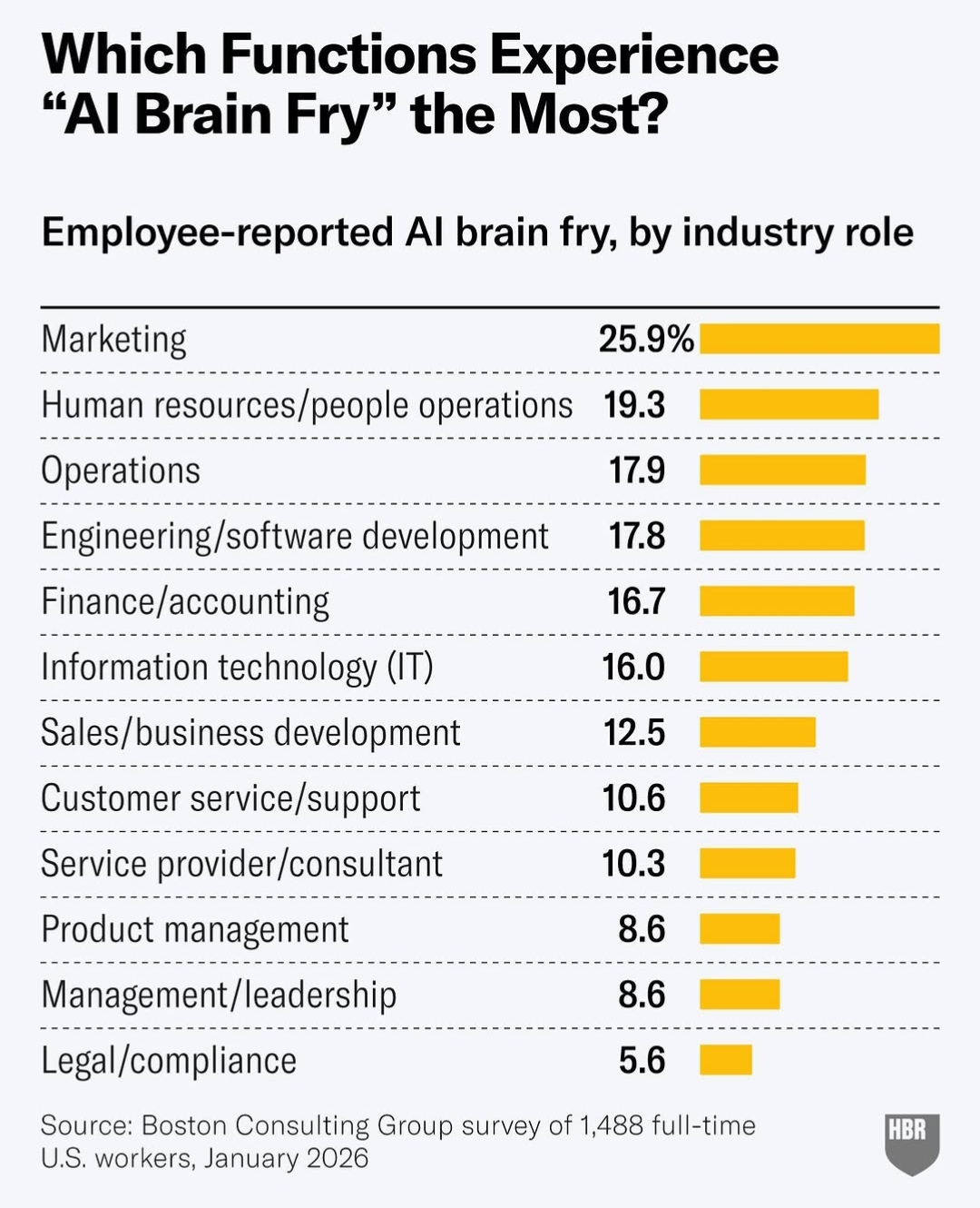 Kondisi ini paling banyak dilaporkan oleh fungsi marketing, dengan angka 25,9% — tertinggi di antara semua divisi yang disurvei. Di belakangnya ada HR/people operations (19,3%), operations (17,9%), dan engineering (17,8%). Bagi pelaku UMKM yang seringkali merangkap semua fungsi ini sendirian — dari marketing, operasional, hingga layanan pelanggan — risiko mengalami AI brain fry tentu jauh lebih besar dari rata-rata karyawan kantoran.
