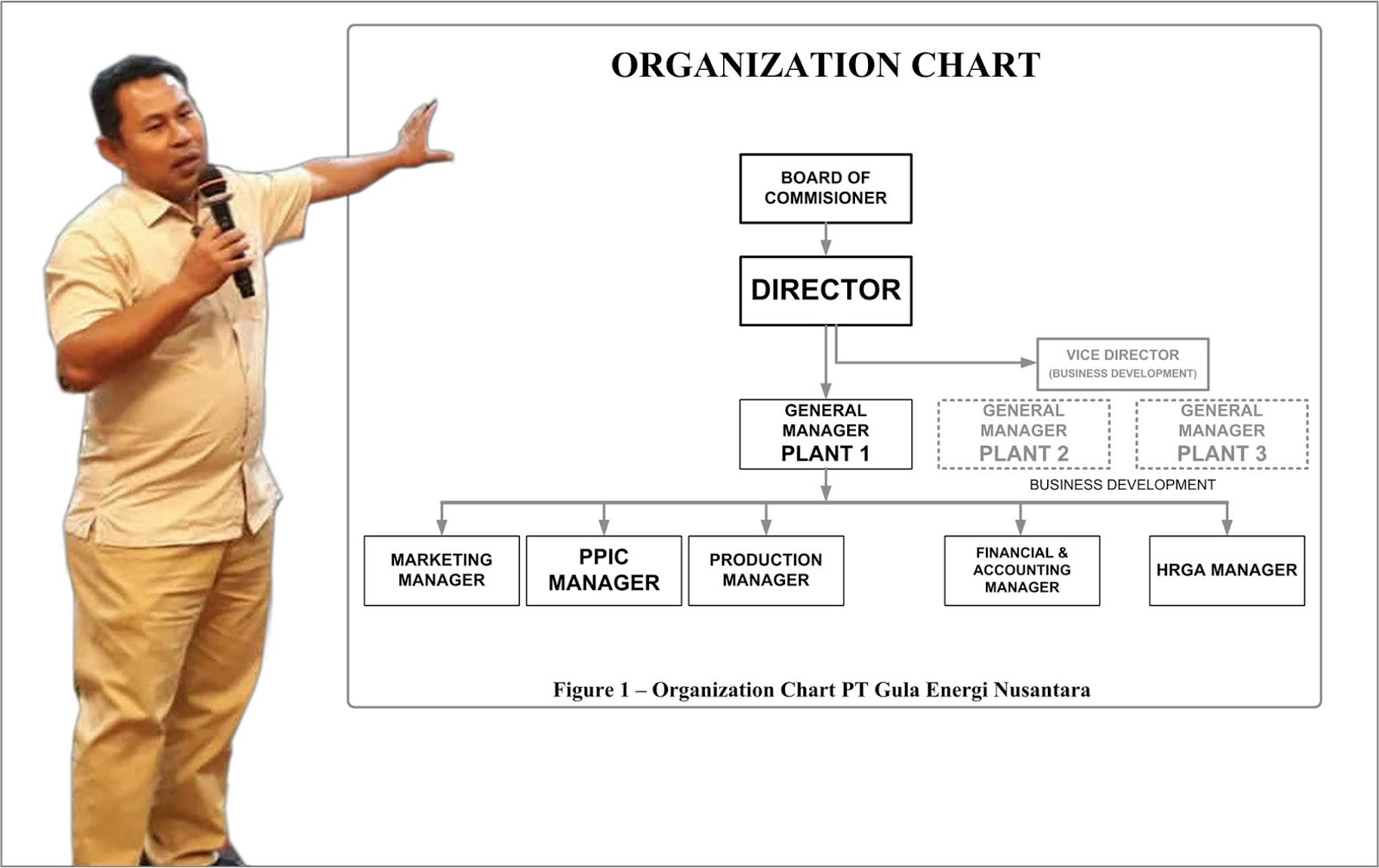 Fungsi kerja secara nyata akan muncul dalam sebuah struktur organisasi perusahaan yang memberikan gambaran beberapa fungsi kerja (department) dan jenjang-jenjang mereka dalam berorganisasi dalam perusahaan. Fungsi kerja tergantung dari jenis usaha dan skala usahanya. Untuk UMKM struktur organisasi di bawah ini telah mencukupi, dan bahkan telah mengakomodasi pengembangan bisns di masa mendatang.