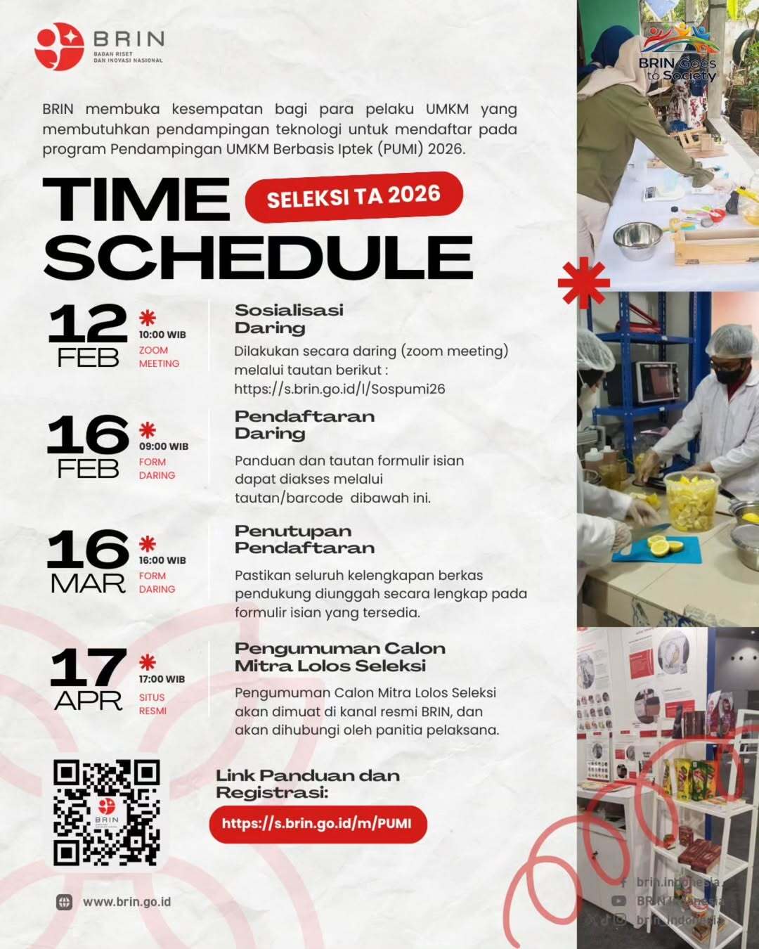 Menjawab kebutuhan tersebut, Badan Riset dan Inovasi Nasional (BRIN) kembali membuka program Pendampingan UMKM Berbasis IPTEK (PUMI) 2026. Program ini ditujukan bagi pelaku UMKM yang membutuhkan dukungan teknologi untuk meningkatkan kualitas produk, efisiensi proses produksi, hingga daya saing usaha.
