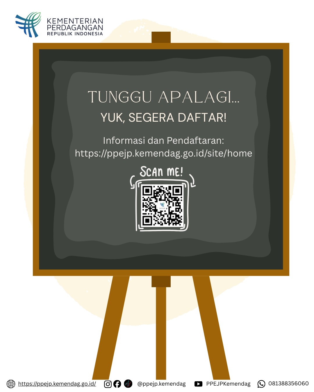 Informasi lengkap dan pendaftaran dapat diakses melalui: https://ppejp.kemendag.go.id/site/home